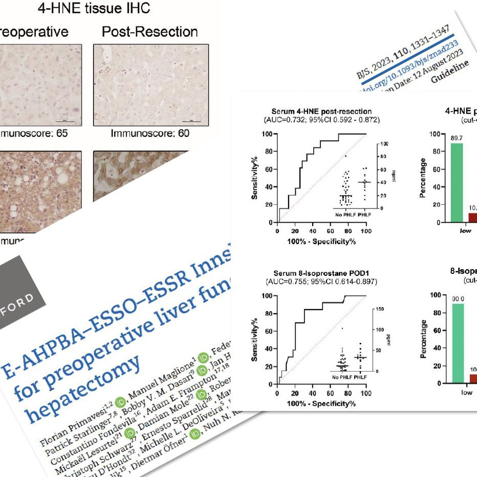 - Maier E, Stättner S, Carrion-Alvarez L, Di Martino M, Olthof P, Primavesi F, Socharova D, van Laarhoven S, Balakrishnan A, Breitkopf R, Buis CI, Cipriani F, Erdmann J, Frampton A, Fuks D, Gilg S, Gulla A, Lancellotti F, Margreiter C, Melloul E, Oberkofler C, Petritsch S, Raab H, Rahbari NN, Rappold D, Reiberger T, Ruzzenente A, Sallinen V, Schäfer B, Schnitzbauer AA, Serrablo A, Soreide K, Sparrelid E, Starlinger P, Stavrou GA, Tinguely P, Aldrighetti L, Dasari BVM, Donadon M, Dopazo C, Gruenberger T, Jonas E, Malik H, Viganó L, Siriwardena AK, Maglione M. The E-AHPBA - ESSO - Innsbruck consensus recommendations on peri- and postoperative management following liver resection. HPB (Oxford). 2025 Nov 13:S1365-182X(25)01671-5. (IF: 2.4)